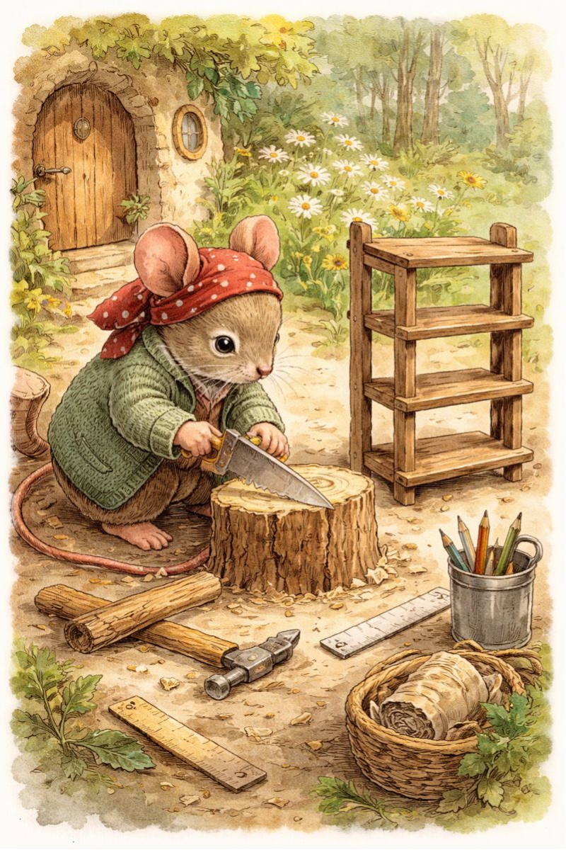Muisje bouwt.
